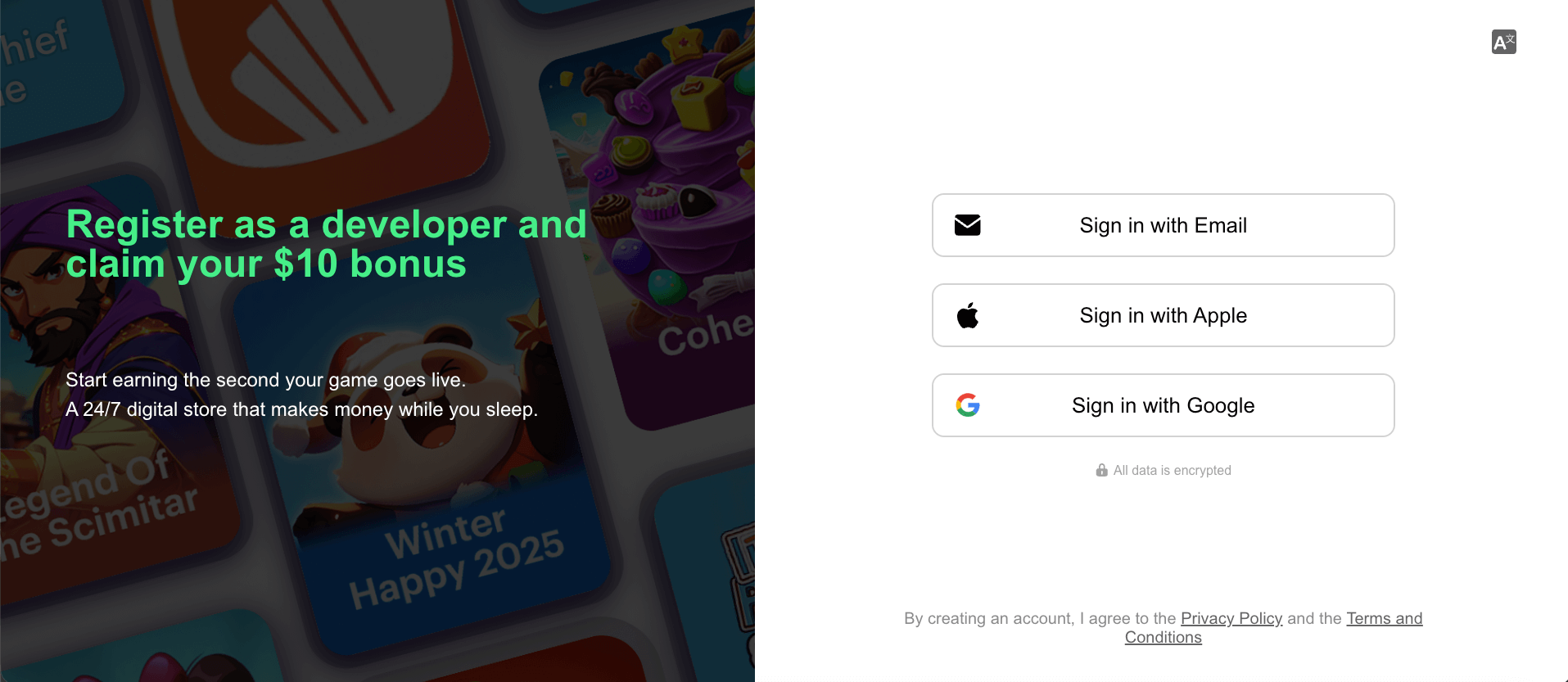 Open the KiX Developer Center and sign in with Google, Apple, or email.