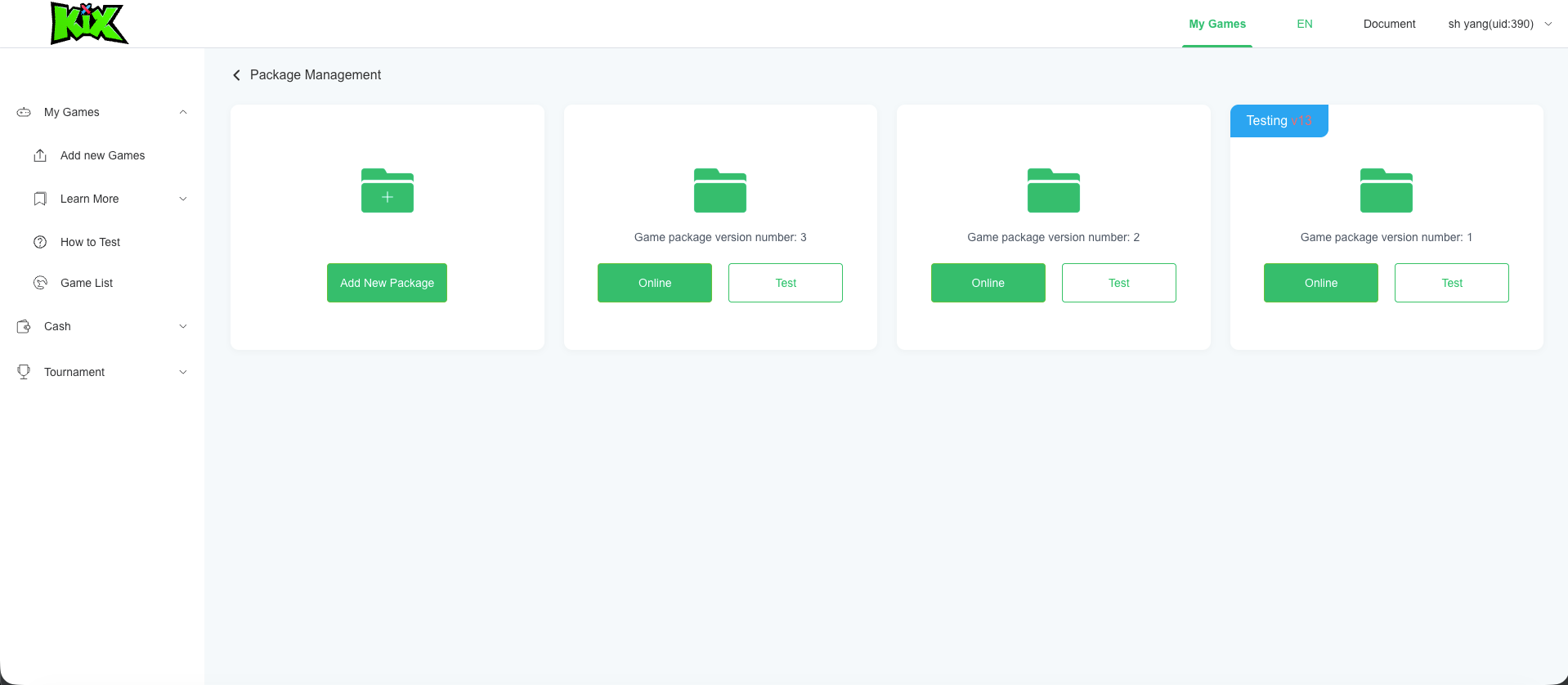 After installing and registering, find your user ID on the "ME" page. Enter this ID in "Test User ID Configuration" so this user can preview your game during the review stage.
